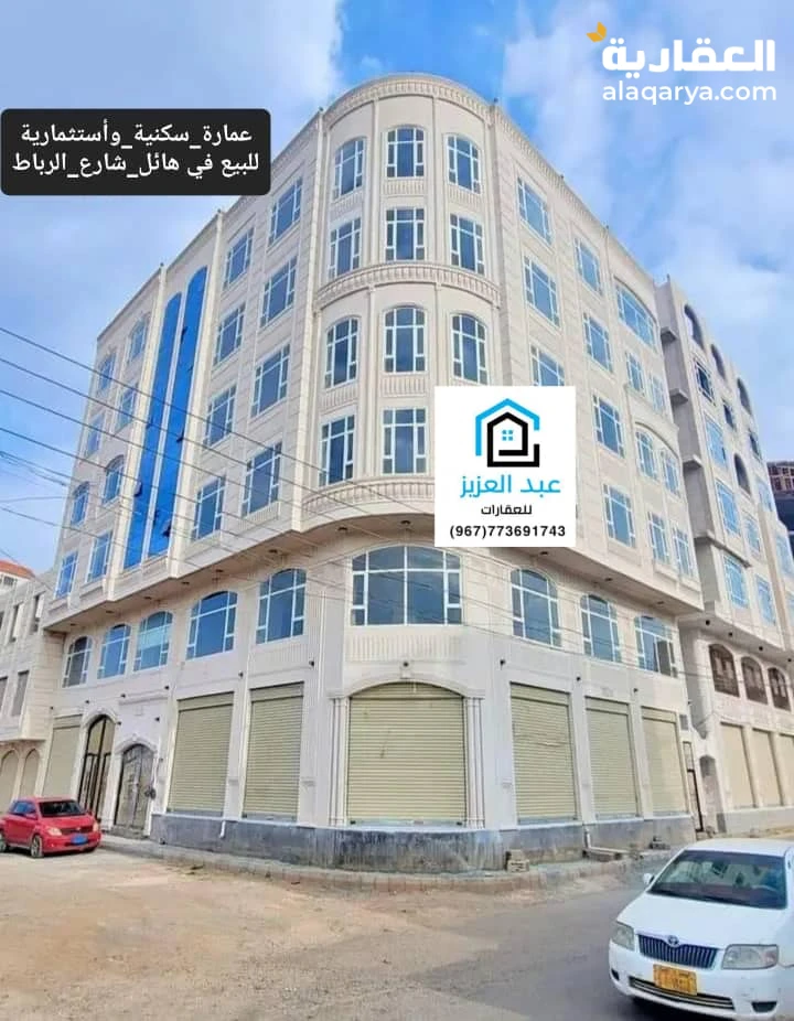 *عمارة_تجارية_واستثمارية للبيع بالعاصمة_صنعاء في هائل_شارع_الرباط* ▪︎ العمارة *مساحتها* 7 لبن حر معمده ومسجلة بالسجل العقاري ركنية على شارعين شارع 14 متر،، وشارع 14 متر،، العمارة درجة ثالثة من شارع_الستين الرئيسي،، العمارة عملها شخصي بكل معنى الكلمه ومسلح هردي والعمل كامل موثق بالصور والفيديوهات من بداية العمل وحتى النهاية.. ▪︎ العمارة مكونة من الاتي // 👈 بدروم كامل،، وستة طوابق ب 11 شقة،، وست فتحات تجارية على الشارعين،، ومكان الأصنصير الكهربائي،، ومدخل جانبي للعمارة، وحوش سيارة،، وحوش سيارة نزول للبدروم (البدروم مصمم مواقف سيارات)،، ومدخل رئيسي للعمارة،، وخزان أرضي كبير.. ▪︎ العمارة مصممه (فندق، مؤسسة، شركة، شقق_مفروشة_فندقية، شقق_سكنية، الخ..) *السعر* 1,300,000$ دولار قابل للتفاوض 773691743 📍عندي عمارة وارض وفله للبدل وشقق للبيع و للايجار في بيت بوس وحده