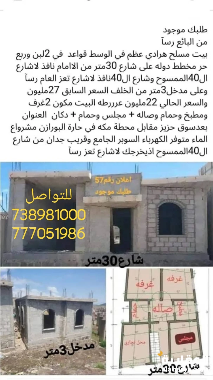 💥✍️ يوجد لدينا عدة عروض بـيـوت + ارضـي بسعر مغرررررررري جدددددان اتصل738981000 واتساب777051986