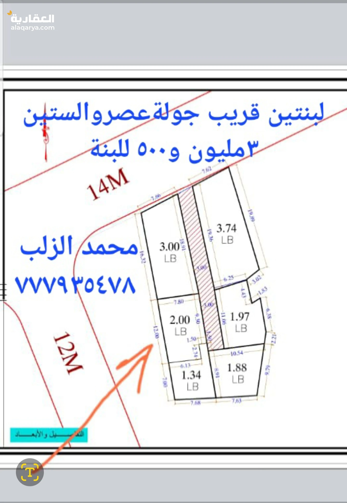 ارض للبيع قريب جوله عصر والستين بسعر خيال 💫💫💫💫 لبنتين وصايا شارع ٣متر نافذ الي شارع ١٤ كل الخدمات متوفره مجاري ومدارس واسواق الموقع وسط فلل وعماير راقية السعر ٣مليون و٥٠٠للبنة 💫💫💫💫 البايع راسااا ولا يوجد دلالين ابد للإستفسار والمعاينة محمد الزلب ٧٧٧٩٣٥٤٧٨ مسموح لجميع المكاتب بنشر الاعلان
