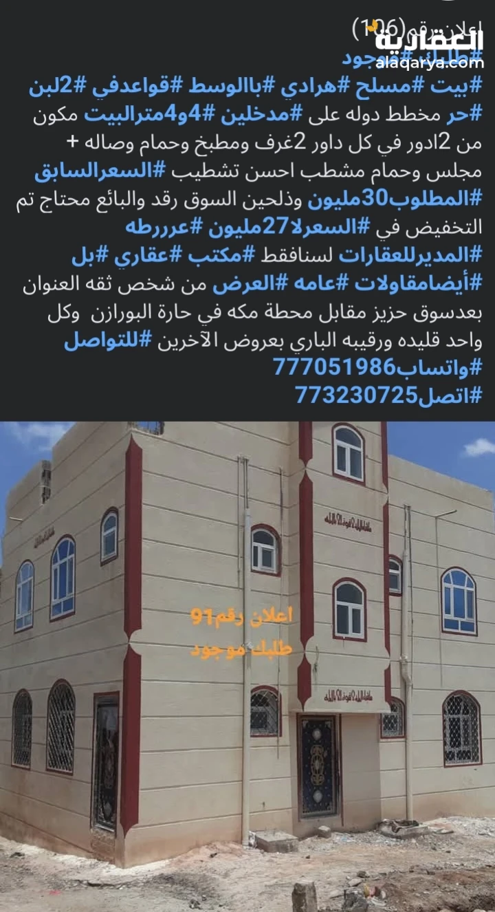 | طريقة الدفع | نقدي | تاريخ اضافة الاعلان | 2025-08-02 |