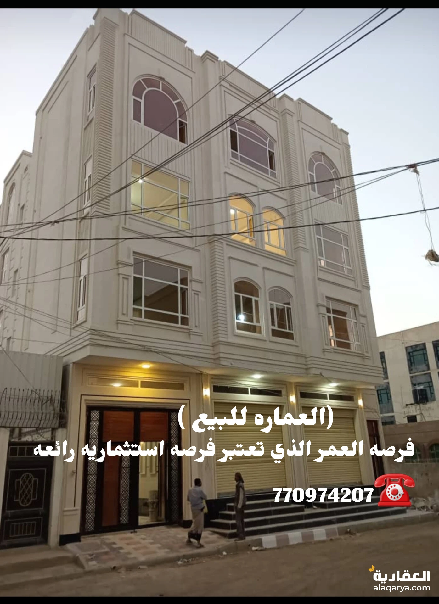 عماره من اجمل عماير صنعاء لعشاق الاستثمار العقاري - تجاري -سكني :::::::::::؛:::::؛:::؛::؛::: تتكون من ؟ ▪️4 دور وبدروم واثنين محلات ▪️المساحه 7 لبن ونص معمد في السجل العقاري ▪️موقعها موقع مميز وجذاب - الاصبحي ▪️تشاطيب درجه اولى ١- حجر دوران عمل شخصي ومضمون من اي عيوب كامل التشاطيب تسليم مفتاح ▪️ويوجد لدينا صور وفديوهات من القواعد لانهايه العمل وسعرها مغري ٩٠٠ الف دولار اليمن - صنعاء حي الاصبحي للااستفسار : التواصل ع الرقم (770974207) مؤسسه اجواء صنعاء العقاريه