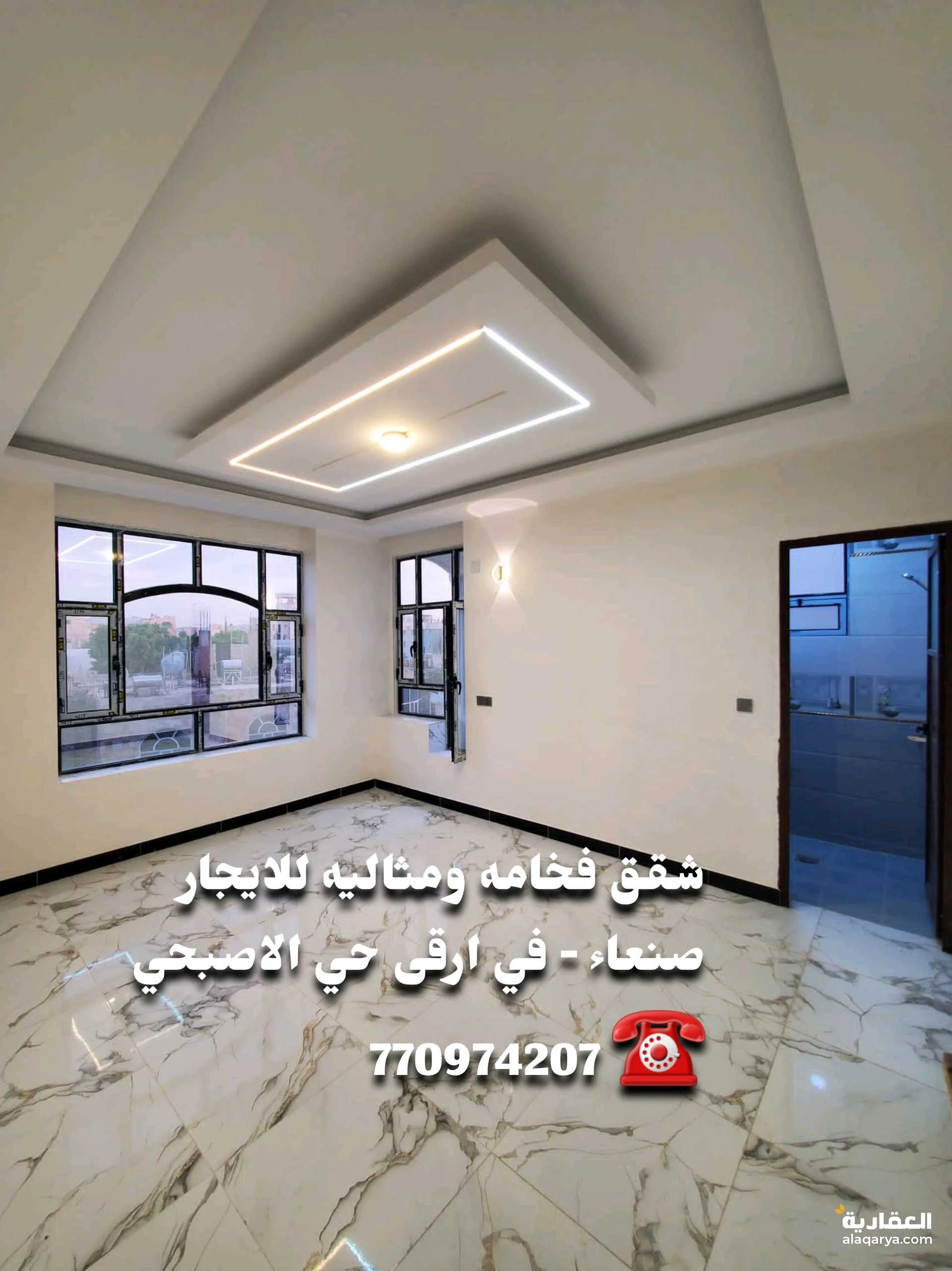 🎖️أكبر وافخر وأدفئ شقق للايجار في صنعاء اول ساكن 🤩.. 📍 الموقع : في ارقاء احياء صنعاء - الاصبحي - - قريب الشارع الرئيسي و جميع الخدمات .. 🔑تتكون الشقة من : ▫️٤ غرف واسعات جداً .. ▫️٣ حمامات .. ▫️صالة جانبية واسعة (( حجمها ١٠ متر )) ▫️مطبخ .. ▫️بلكونة .. ▫️مع مدخلين للشقه .. ✨ أهم ميزتين في الشقق هي الشمس و التهوية - الشقق دافية مشمسة مهواية من كل الجهات .. 💫 متوفر شقق في الادوار (( الأول و الثاني و الثالث و الرابع )) .. 💰 سعر الشقة : 200 الف فقط .. ✨من يبحث عن شقق لا يفوته هذا العرض المميز .. لمعرفة جميع التفاصيل - توصلو معنا اتصال أو واتساب ( 770974207)