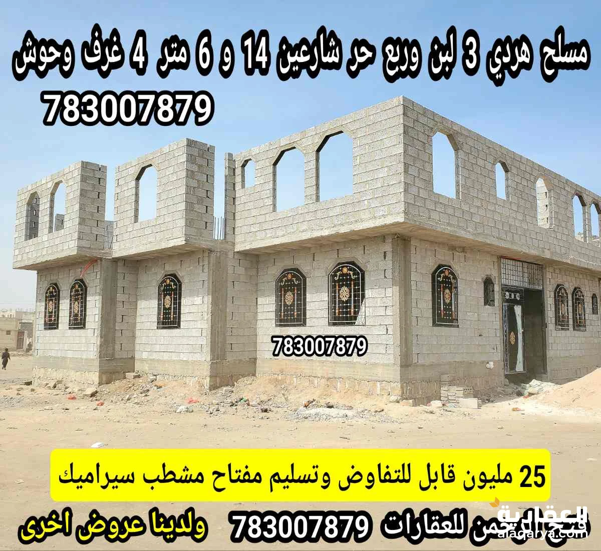 منزل مسلح هردي 3 لبن وربع حر شارعين 14 و 6 متر وتسليم مشطب سيراميك ب 25 مليون قابل للتفاوض ➖➖➖➖➖➖➖➖➖➖➖➖➖ التفاصيل :- عدد الأدوار : دور واحد + ستره دوران للدور الثاني للسقف . نوع البناء : مسلح هردي قواعد وعمدان . المساحه : 3 لبن وربع حر ومعمد وموثق في المحكمه وفي قلم التوثيق العقاري . الشارع : شارعين 14 و 6 متر وقريب جداً للشارع الرئيسي . { مكون من مجلس وحمام بمدخل منفصل + مدخل اخر لثلاث غرف واسعه وحمام ومطبخ وصاله واسعه } يوجد حوش سياره . المنزل ينقصه تشطيبات بسيطه ويتم تسليم المنزل للمشتري مشطب كامل تشطيب سيراميك درجه اولى . ▪️المنزل يقع وسط حي سكني . ▪️متوفر كافه الخدمات ( ماء - كهرباء حكومي وتجاري - جامع - مدارس حكومي ومدارس خاصه - مواصلات - سوق - مستشفيات .. وكافه الخدمات الاخرى ) ➖➖➖➖➖➖➖➖➖➖➖➖➖ المكان : صنعاء - شارع المطار - قبل سوق الخميس . السعر : 25 مليون قابل للتفاوض . 📞 للتواصل والأستفسار الأتصال على الرقم : 783007879 { فتح الرحمن للعقارات } { ويوجد لدينا عده بيوت وفلل وعمائر اخرى وبمساحات مختلفه واسعار منافسه } { ولكي يوصلكم كل جديد لا تنسى متابعه الحساب } ➖➖➖➖➖➖➖➖➖➖➖➖➖ عملائنا الكرام :- { أساس عملنا وجميع عروضنا العقاريه نقدمها لكم بدقه عاليه ومصداقيه وامانه وبكافه التفاصيل والسعر الحقيقي .