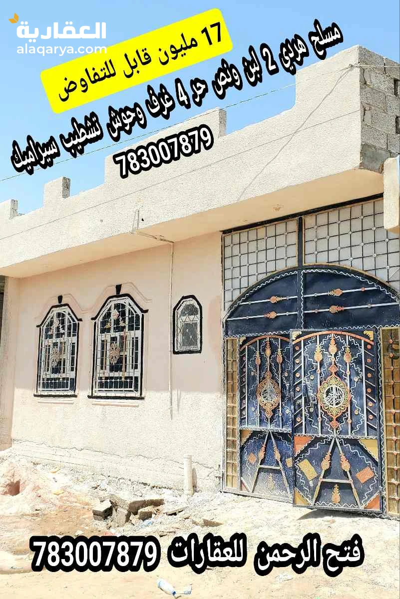 منزل مسلح هردي 2 لبن ونص حر 4 غرف واسعه وحوش تشطيب سيراميك ب 17 مليون قابل للتفاوض } ➖➖➖➖➖➖➖➖➖➖➖➖➖ التفاصيل :- عدد الأدوار : دور واحد + ستره دوران للدور الثاني . نوع البناء : مسلح هردي . المساحه : لبنتين ونص حر ومعمد وموثق في المحكمه وفي قلم التوثيق العقاري . الشارع : شارع 6 متر وقريب للشارع الرئيسي . { المنزل مكون من مجلس وحمام بمدخل منفصل + مدخل اخر لثلاث غرف واسعه وحمام ومطبخ وصاله واسعه } يوجد حوش سياره . تشطيب المنزل كامل سيراميك درجه اولى . ▪️المنزل يقع وسط حي سكني . ▪️متوفر كافه الخدمات جوار المنزل ( ماء - كهرباء حكومي وتجاري - جامع - مدارس حكومي ومدارس خاصه - مواصلات - سوق - مستشفيات ... وكافه الخدمات الاخرى ) ➖➖➖➖➖➖➖➖➖➖➖➖➖ المكان : صنعاء - شارع المطار - قبل سوق الخميس . السعر : 17 مليون قابل للتفاوض ) 📞 للتواصل والأستفسار الأتصال على الرقم : 783007879 { فتح الرحمن للعقارات } { ويوجد لدينا عده بيوت وفلل وعمائر اخرى وبمساحات مختلفه واسعار منافسه } { ولكي يوصلكم كل جديد لا تنسى متابعه الحساب } ➖➖➖➖➖➖➖➖➖➖➖➖➖ عملائنا الكرام :- { أساس عملنا وجميع عروضنا العقاريه نقدمها لكم بدقه عاليه ومصداقيه وامانه وبكافه التفاصيل والسعر الحقيقي }