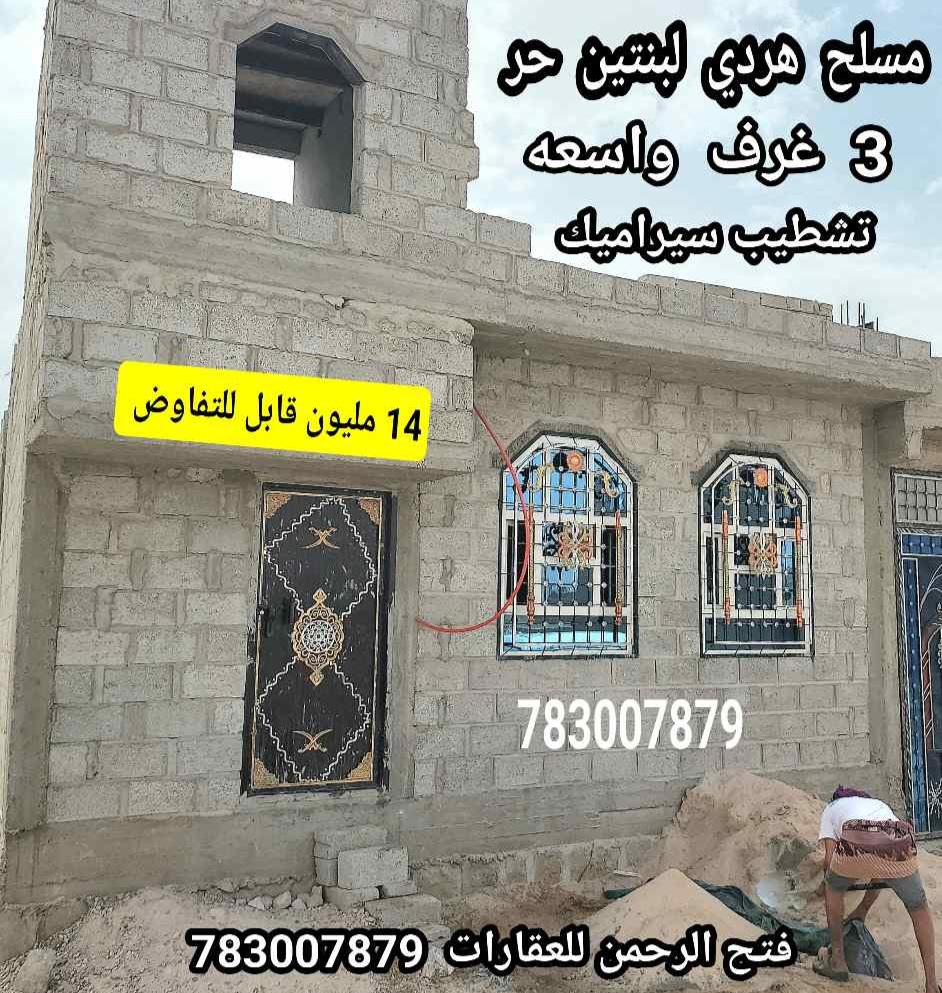 منزل مسلح هردي لبنتين حر 3 غرف واسعه تشطيب سيراميك ب 14 مليون قابل للتفاوض ➖➖➖➖➖➖➖➖➖➖➖➖➖ التفاصيل :- عدد الأدوار : 1 نوع البناء : مسلح هردي . المساحه : لبنتين حر وموثق في قلم التوثيق العقاري . الشارع : شارع 6 متر وقريب للشارع الرئيسي . { المنزل مكون من مجلس وحمام بمدخل منفصل + مدخل اخر لغرفتين واسعه وحمام ومطبخ وصاله واسعه } تشطيب المنزل كامل سيراميك درجه اولى . ▪️المنزل يقع وسط حي سكني . ▪️متوفر كافه الخدمات جوار المنزل ( ماء - كهرباء حكومي وتجاري - جامع - مدارس حكومي ومدارس خاصه - مواصلات - سوق - مستشفيات .. وكافه الخدمات الاخرى ) ➖➖➖➖➖➖➖➖➖➖➖➖➖ المكان : صنعاء - شارع المطار - قبل سوق الخميس . السعر : 14 مليون قابل للتفاوض ) 📞 للتواصل والأستفسار الأتصال على الرقم : 783007879 { فتح الرحمن للعقارات } { ويوجد لدينا عده بيوت وفلل وعمائر اخرى وبمساحات مختلفه واسعار منافسه } { ولكي يوصلكم كل جديد لا تنسى متابعه الحساب } ➖➖➖➖➖➖➖➖➖➖➖➖➖ عملائنا الكرام :- { أساس عملنا وجميع عروضنا العقاريه نقدمها لكم بدقه عاليه ومصداقيه وامانه وبكافه التفاصيل والسعر الحقيقي