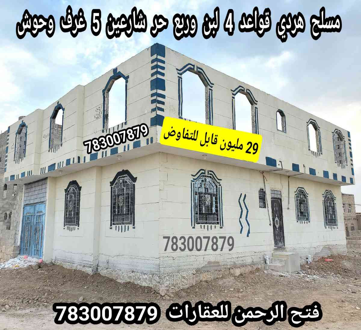 منزل مسلح هردي شارعين 4 لبن وربع حر 5 غرف وحوش مشطب سيراميك ب 29 مليون قابل للتفاوض ➖➖➖➖➖➖➖➖➖➖➖➖➖ التفاصيل :- عدد الأدوار : دور واحد + ستره دوران للدور الثاني للسقف . نوع البناء : مسلح هردي . المساحه : 4 لبن وربع حر ومعمد وموثق في المحكمه وفي قلم التوثيق العقاري . الشارع : شارعين 6 و 6 متر وقريب جداً للشارع الرئيسي . { مكون من مجلس وحمام بمدخل منفصل + مدخل اخر لأربع غرف واسعه وحمام ومطبخ وصاله واسعه } يوجد حوش سياره . تشطيب المنزل كامل سيراميك درجه اولى . ▪️المنزل يقع وسط حي سكني . ▪️متوفر كافه الخدمات ( ماء - كهرباء حكومي وتجاري - جامع - مدارس حكومي ومدارس خاصه - مواصلات - سوق - مستشفيات .. وكافه الخدمات الاخرى ) ➖➖➖➖➖➖➖➖➖➖➖➖➖ المكان : صنعاء - شارع المطار - قبل سوق الخميس . السعر : 29 مليون قابل للتفاوض . 📞 للتواصل والأستفسار الأتصال على الرقم : 783007879 { فتح الرحمن للعقارات } { ويوجد لدينا عده بيوت وفلل وعمائر اخرى وبمساحات مختلفه واسعار منافسه } { ولكي يوصلكم كل جديد لا تنسى متابعه الحساب } ➖➖➖➖➖➖➖➖➖➖➖➖➖ عملائنا الكرام :- { أساس عملنا وجميع عروضنا العقاريه نقدمها لكم بدقه عاليه ومصداقيه وامانه وبكافه التفاصيل والسعر الحقيقي .