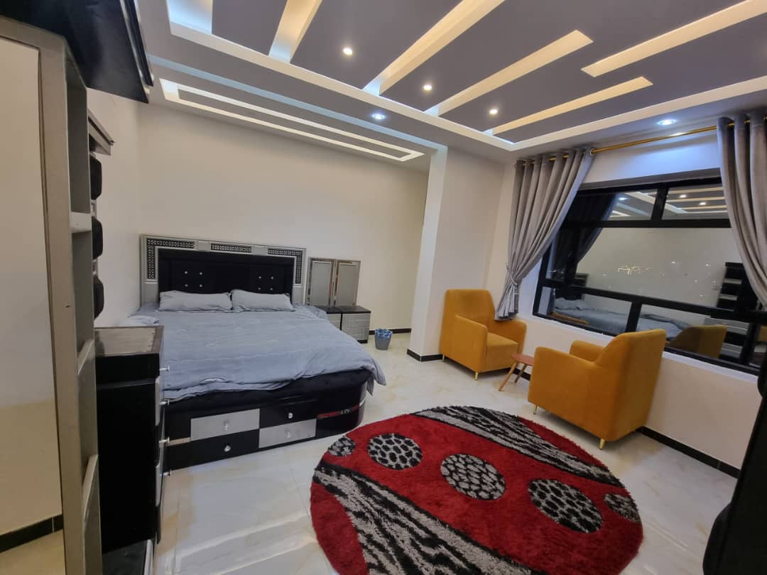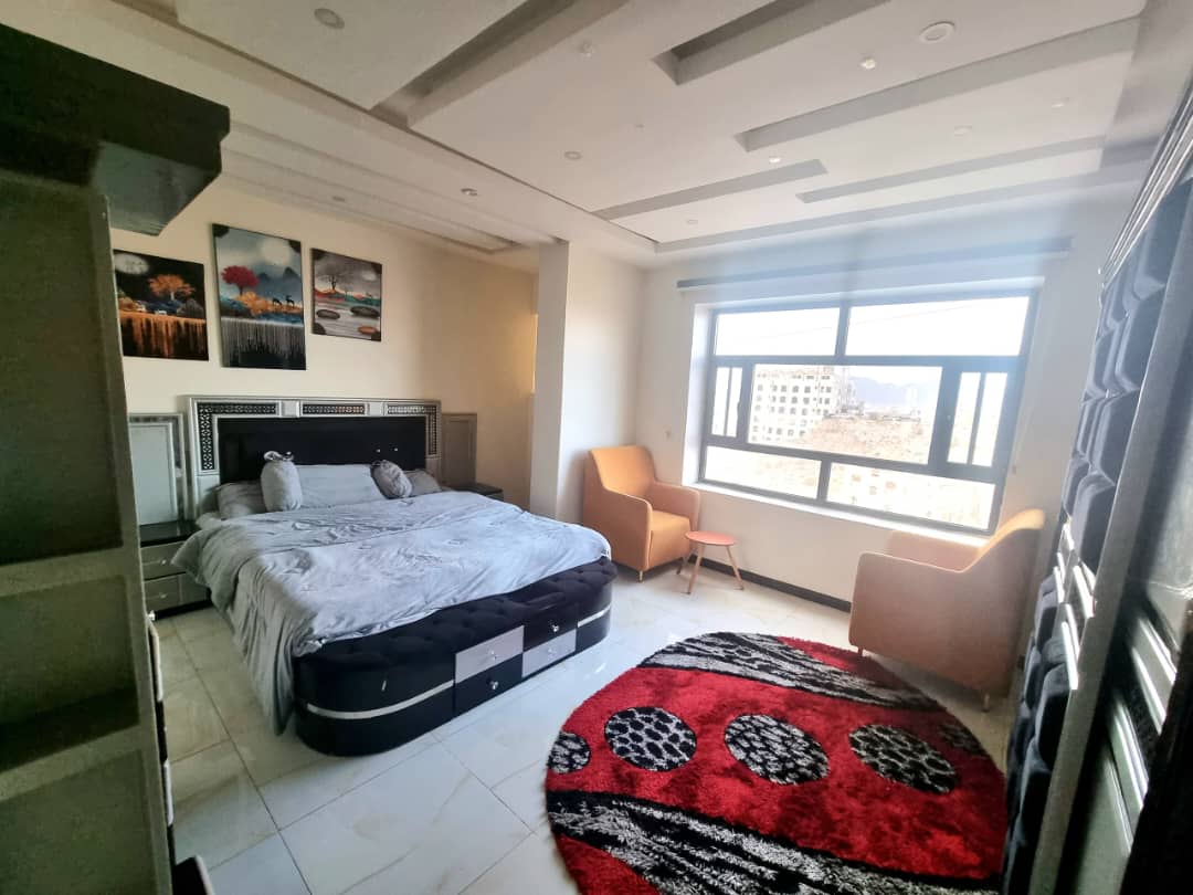 شقة مفروشة للإيجار تشطيبات سوبر لوكس واثاث راقي. الموقع: صنعاء بيت بوس قريب جميع الخدمات الشقة مدخلين مكونه من 4 غرف و 3 حمامات ومطبخ وصالة وبلكونة ومخزن. الشقة في الدور الثامن . * تشطيبات فاخرة * مصعد 24 ساعة. * مواقف سيارات. * الشقة منفسة ومهوية واطلالة بانورامية. * موقع قريب كل الخدمات الإيجار : 500 دولار للتواصل على الرقم: 772960797